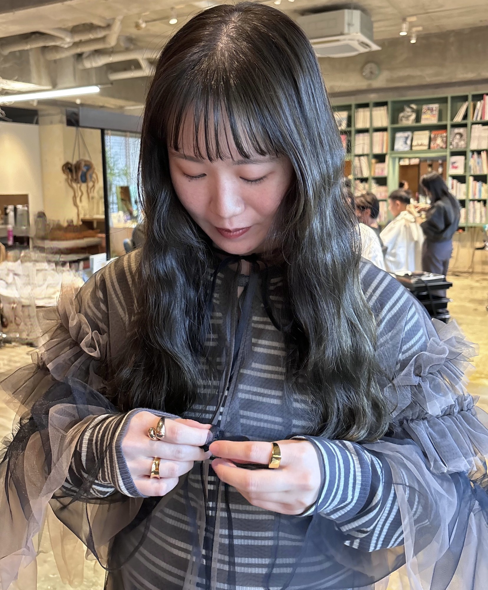 ぱつっとバング × ゆるウェーブ
