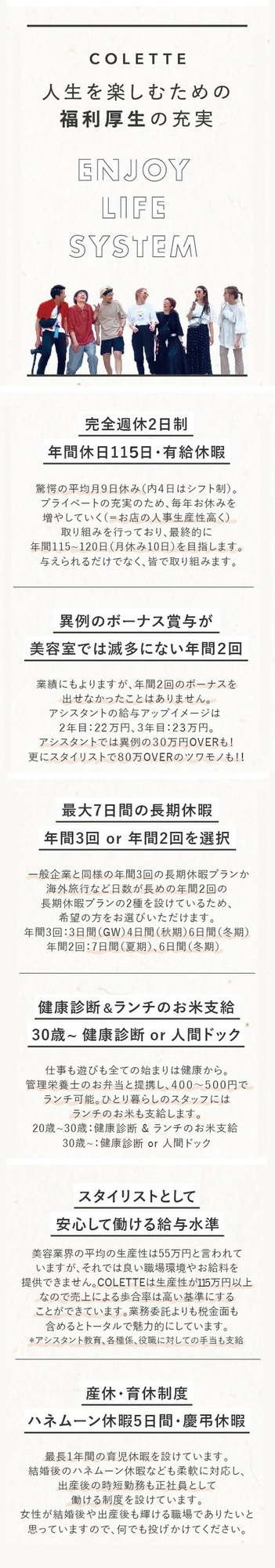 何より雇用条件が整ってるので、給与水準が高いのと美容業界では珍しくボーナスがしっかりあるのは入社して良かったなと思いました。